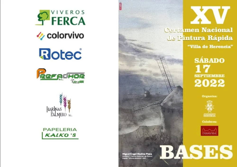 - El Ayuntamiento de Herencia convoca el XV Certamen Nacional de Pintura Rápida “Villa de Herencia” a celebrar el 17 de septiembre de 2022 en Herencia (Ciudad Real).
